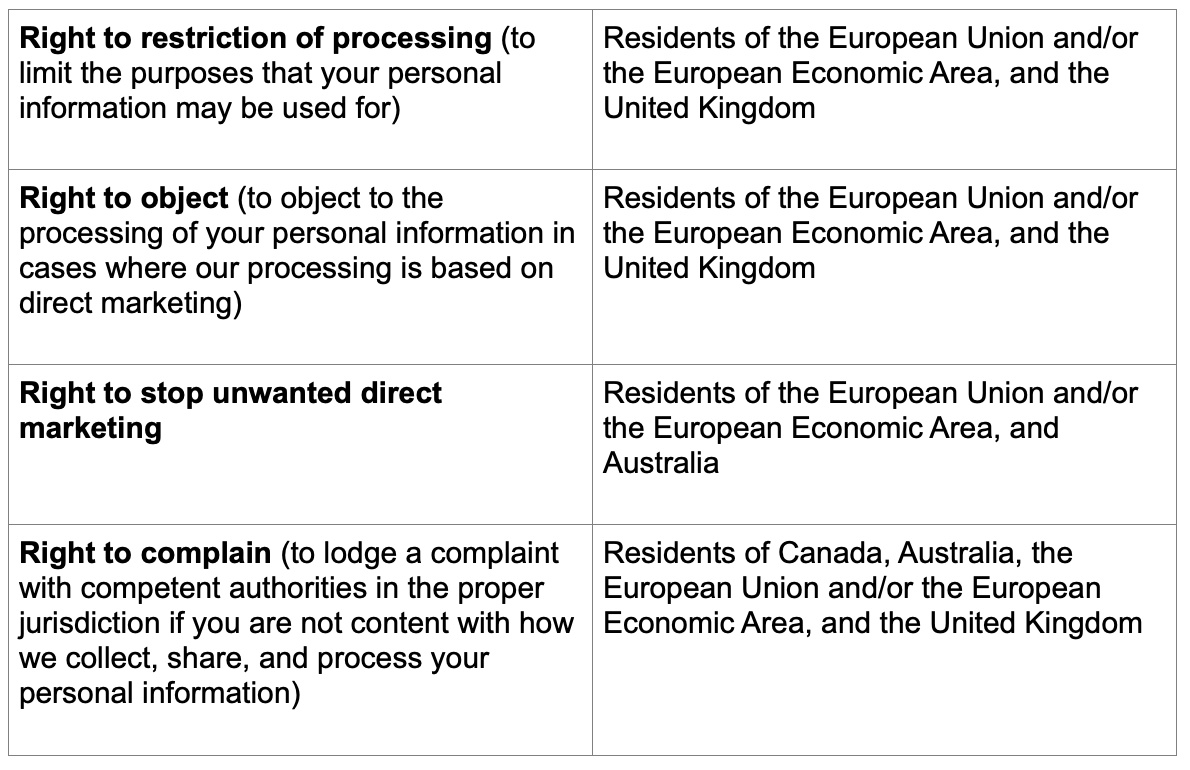 We retain your personal information for as long as necessary to fulfill the transactions you have requested, or for other essential purposes such as complying with our legal obligations, maintaining business and financial records, resolving disputes, maintaining security, detecting and preventing fraud and abuse, and enforcing our agreements, or until such time as you let us know you would like for us to delete it or unsubscribe from our marketing contacts.